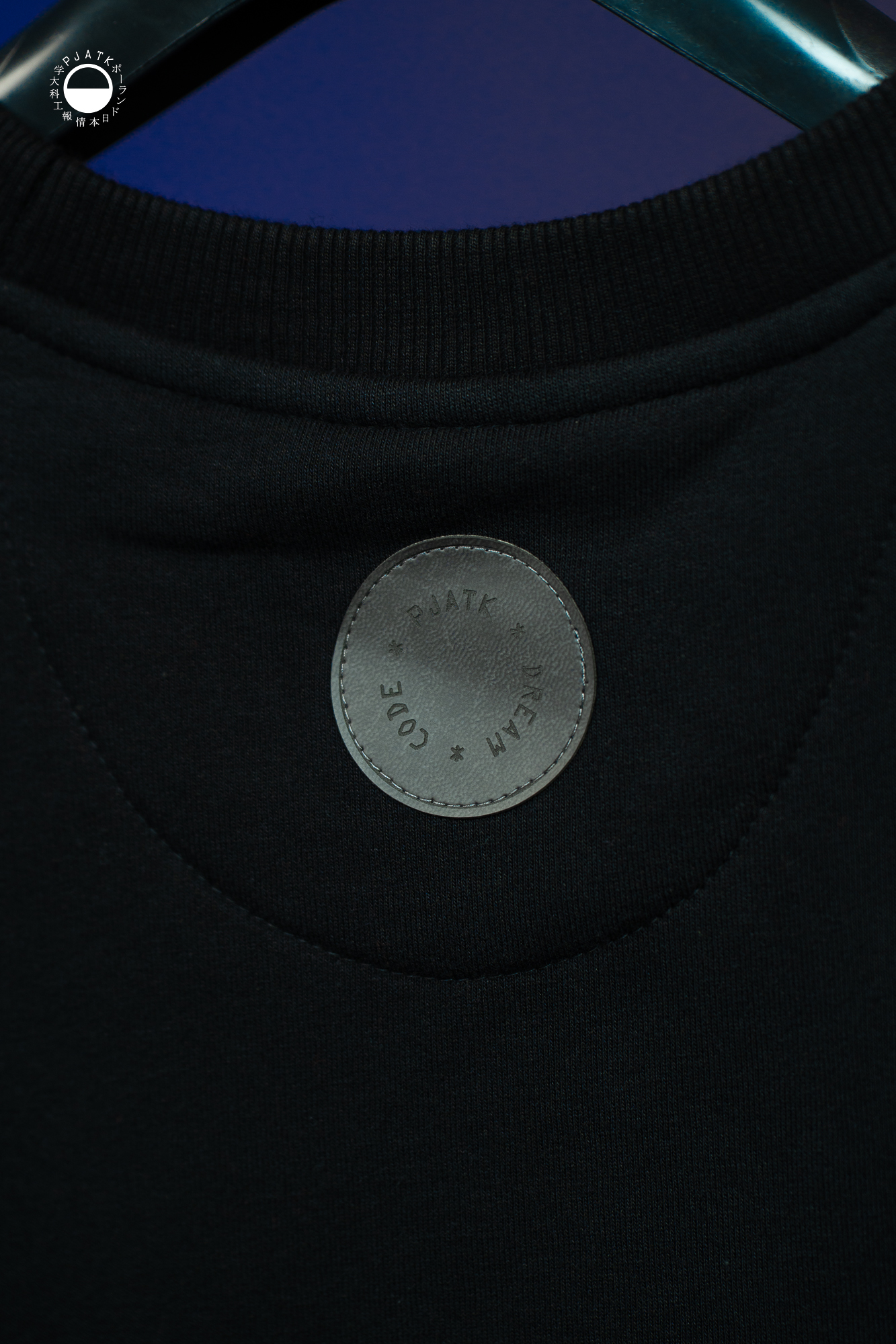Z tyłu naszywka z eko skóry z napisem DREAM CODE PJATK.