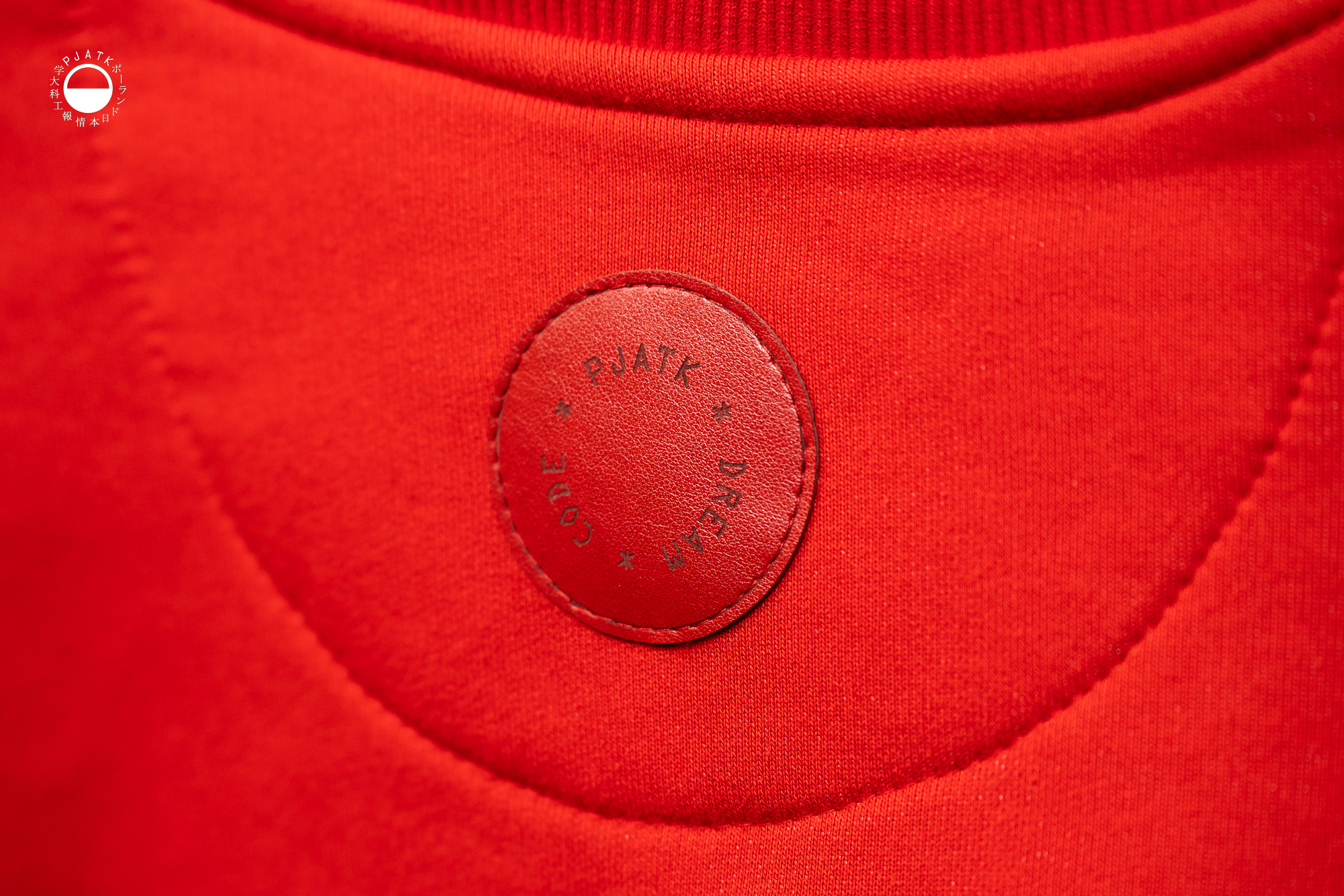 Z tyłu naszywka z eko skóry z napisem DREAM CODE PJATK.