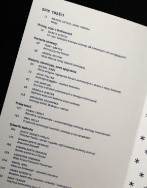 Publikacja „Kino – Media – Sztuka – Twórcy. Szkice” została zaprojektowana w pracowni artystyczno-badawczej Publishing Research Studio Polsko-Japońskiej Akademii Technik Komputerowych.